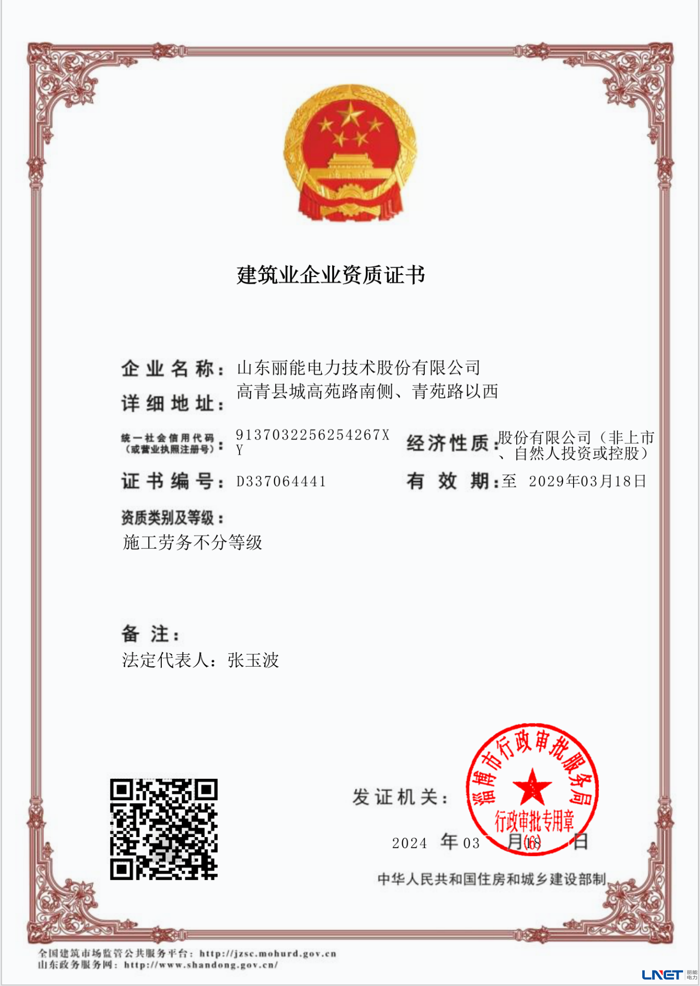 建筑业企业资质证书-山东丽能电力技术股份有限公司
